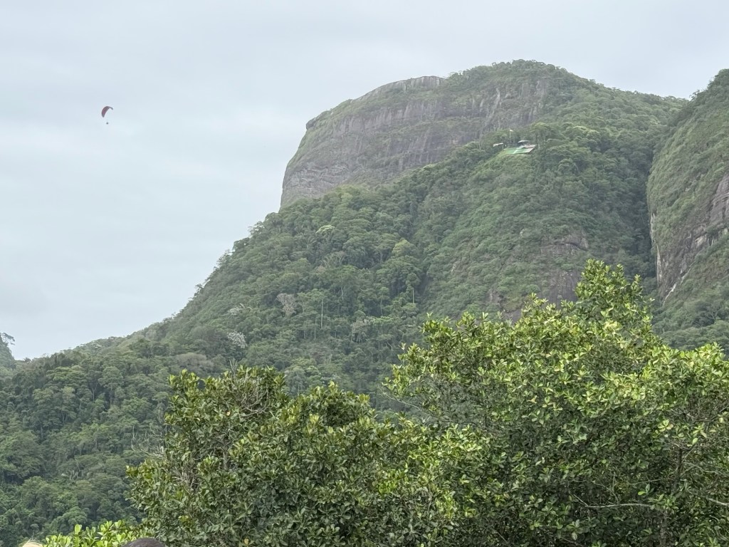 We made a quick photo stop to overlook Praia do Leblon (Leblon Beach) and golf course area, as well as watch some paragliders launching from a pad on the side of one of the nearby mountains.