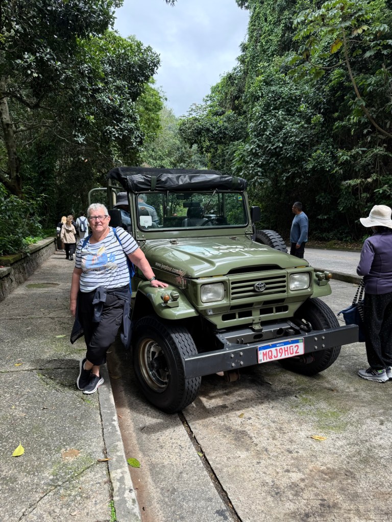 Our formal tour had ended and we have a flight home schedule to leave at 10:00 pm but we had one more opportunity for a morning excursion in Rio so we chose one that wasn’t too energetic- a jeep tour right into the heart of the Tijuca National Park Forest. We thought by now we might want to get away from the cement of the cities and do some forest bathing.