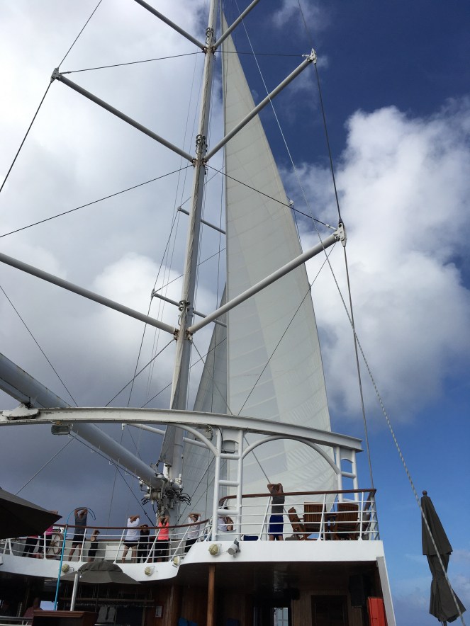 Yesterday was a sea day and relatively uneventful so I didn’t blog. I did get up in time to do yoga on the flying bridge of the ship at 7 a.m. with the sun coming up. If you do yoga, think about that for a minute. I don’t know about you but I have enough trouble holding poses with a solid floor under my yoga mat. Doing it on a rolling ship created all sorts of new challenges. I figure if I lived on a ship my core would be like cement. And I did attend a lecture about the migration of peoples in this region in the continuing series by Dr. Kess. (Although I have to admit to nodding off a couple of times).