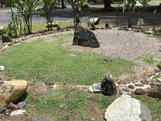 The next stop was “The Famous Polynesian Traditional Vara Voyage Departing Site” which Useless explained to us. In 1300 35 local people departed by a double hulled canoe to start an exploratory voyage that lasted them 9 months. They didn’t have any destination in mind, but they ended up in New Zealand. They know the voyage took at least 9 months because one of the women got pregnant along the way and the child was not born until they arrived. The rocks represented gods that they had prayed to.