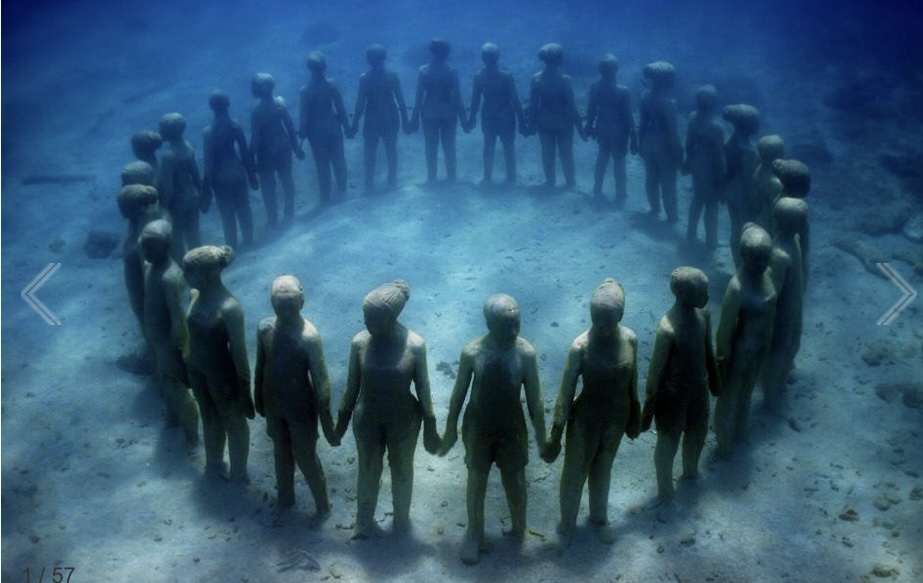 I have already alluded to my excursion activity for today. It won’t surprise you to hear that I went snorkelling this afternoon. But what we went to see might. In 2006, 75 pieces of concrete and steel sculpture by sculptor Jason deCaires Taylor were placed on the sea bed. They were originally put in to protect the sea bed from further erosion and apparently they accomplished their mission as it is coming back. The area is called the Grenada Underwater Sculpture Park and it is protected from any activity which might damage the sea bed or the sculptures. The sea bed is between 5 and 30 feet in the area that we visited, and some of the sculptures were quite far down. Our excursion leader took us on a tour of 13 of the 75 in approximately 45 minutes. I am getting better at diving while snorkelling and I was glad that snorkelling vests were not required as it allowed me to get some more practise while diving to see more detail on the statues. I only came to the surface sputtering once or twice.