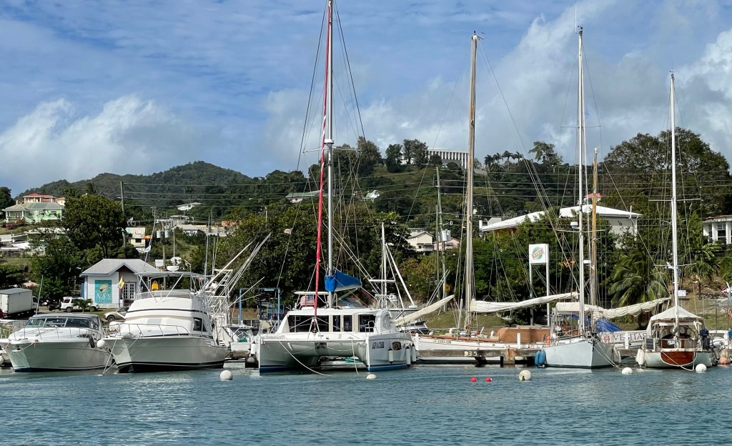 Its primary industries are agriculture and tourism, and fishing is become more significant. A friend of our snorkel boat captain’s went by in a small boat and indicated that he had caught a tuna fish today, and was on the way to the fish plant with it to sell it. There are many larger fishing boats tied up along side the sidewalk along the Main Street on the harbour side in St George’s.
