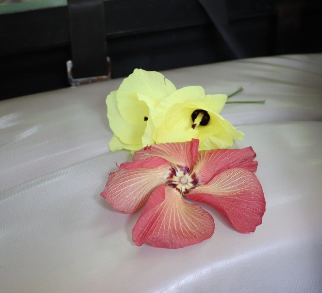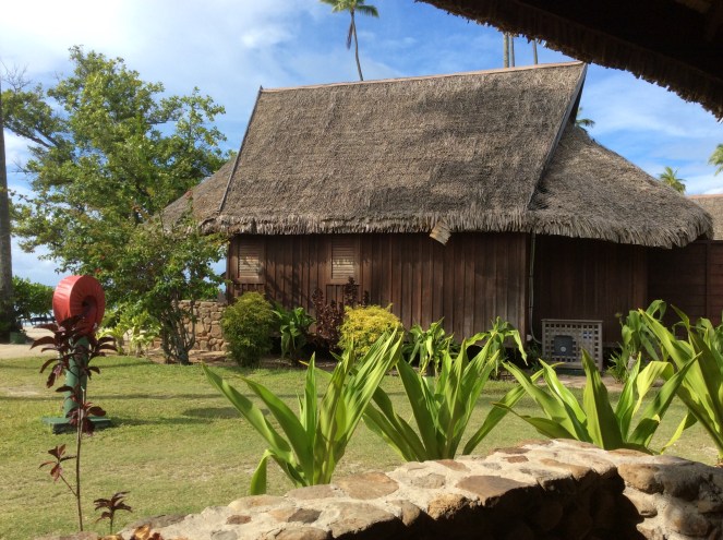 He even showed us how to make a plate out of leaves – the ultimate in recycling. The Ti plant is used for all sorts of things from grass skirts, to decoration, to making harnesses for harvesting cocoanuts. He showed us a wild hibiscus whose bloom opens as yellow in the morning and by the afternoon after being in the sun it is peach colour.