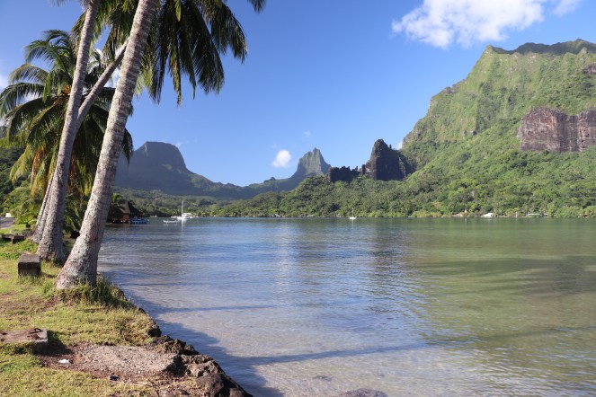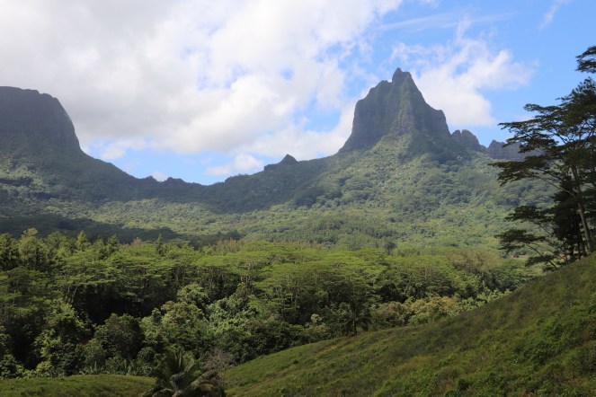Dan picked us up at the hotel and we headed north west on one of the only roads on the island, the one that circumnavigates it. We passed by the local airport and a Jack Nicholas designed golf course. It looked challenging from the small bits we saw, very undulating. We had our first stop at Cooks Bay which was named after Captain Cook who visited the island in 1777. Cook actually explored a bay to the west of Cook Bay but the name of that Bay was too sacred to the Polynesians to change, so they named this one after him. Mount Ratui at just under 900 metres overlooks Cooks Bay. It is one of the highest peaks in French Polynesia.
