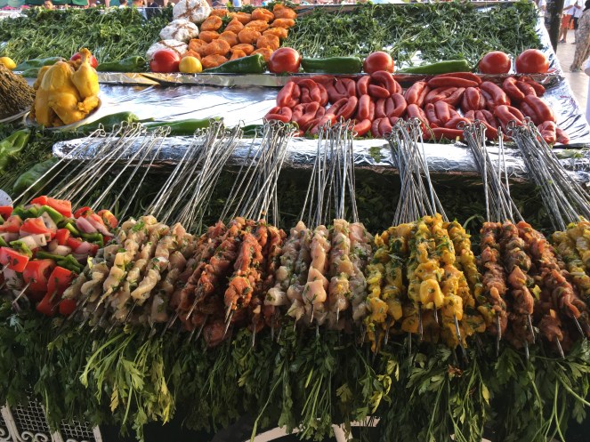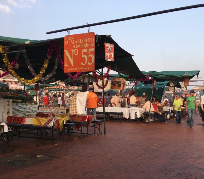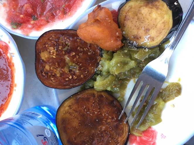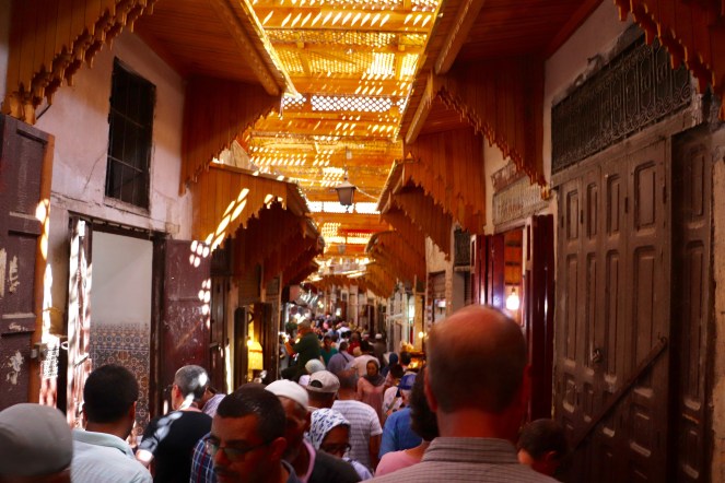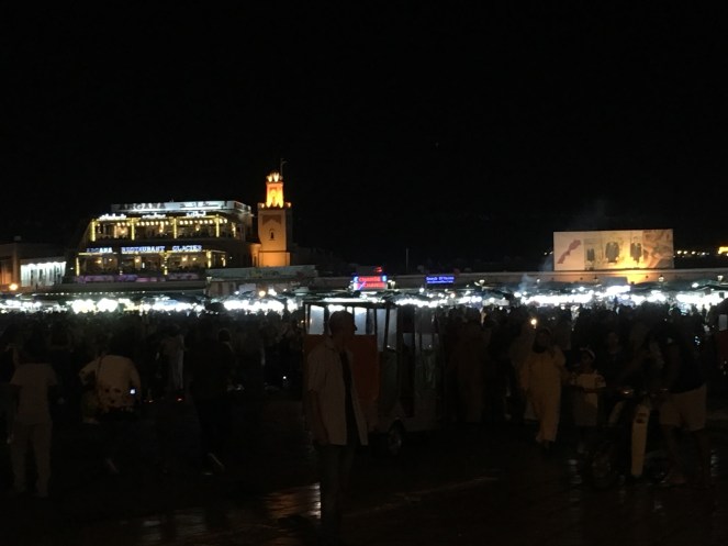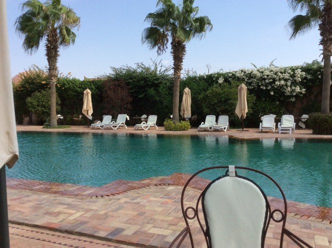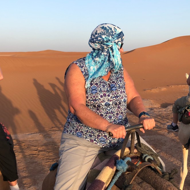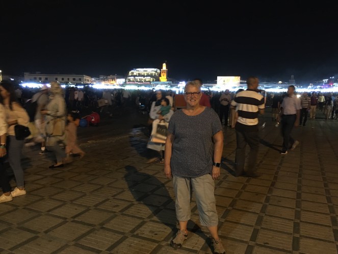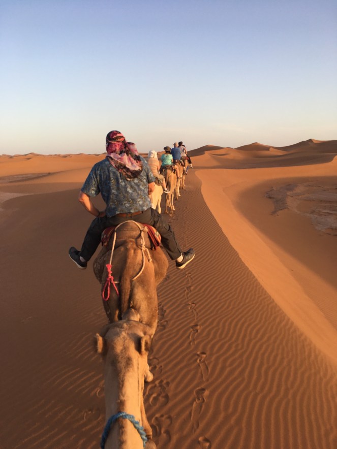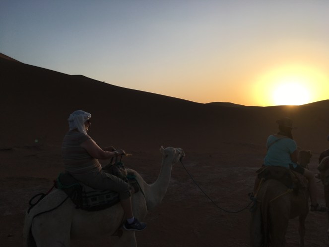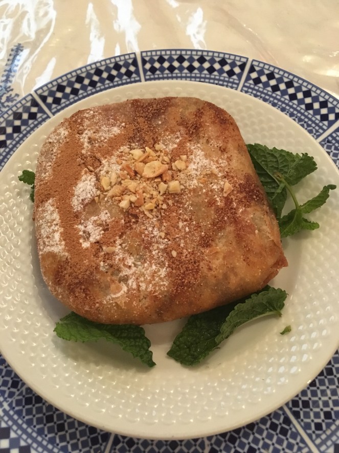 Our hotel here is “really basic”, which Abdul warned us several times, but we had a great dinner in a nice restaurant tonight which I think we all enjoyed as one of the best we’ve had. I had Kefta Tajine once again and it was even better than the last one I’d had. Dessert was sliced apples, bananas and oranges drizzled with honey and sprinkled with cinnamon. Yum.