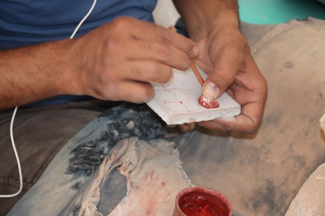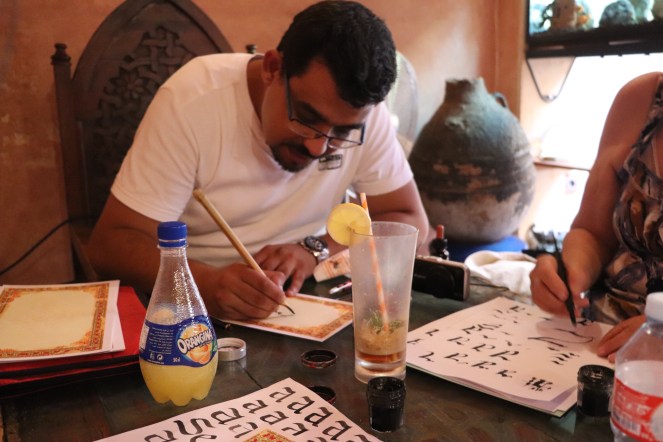 Then we were invited to see the third floor of the home, the terrace, where the kitchen was located, and an outdoor sink. There were dates drying on a raised area that used to be an open courtyard to allow more light into the living spaces before they had electricity but was now closed in. Abdul gave us a bit of an impromptu Arabic vs Latin character lesson but I’m afraid we failed miserably as students. He’s going to try again.