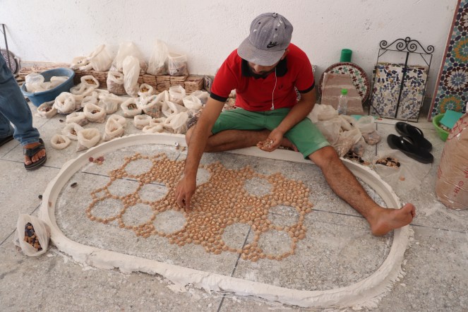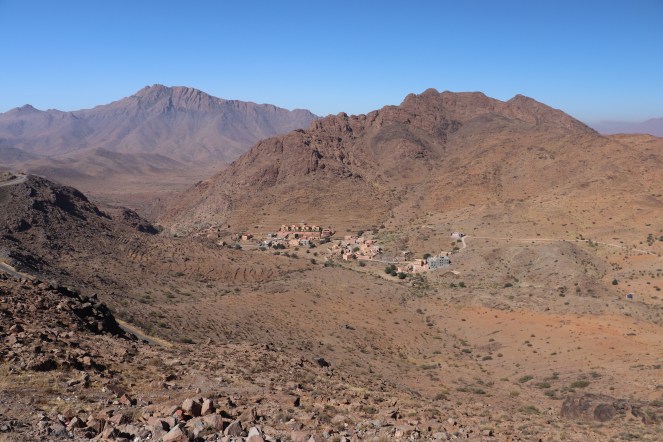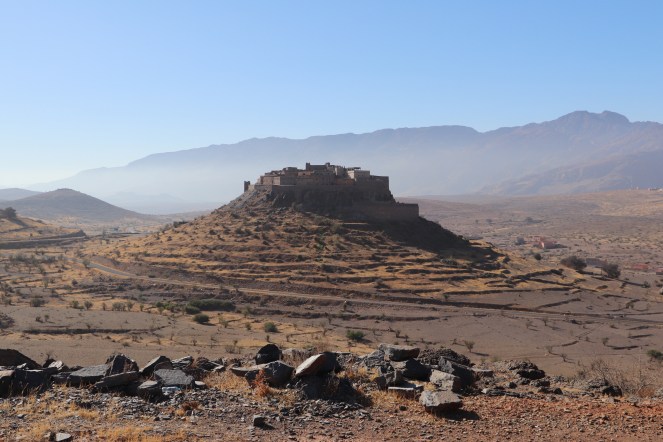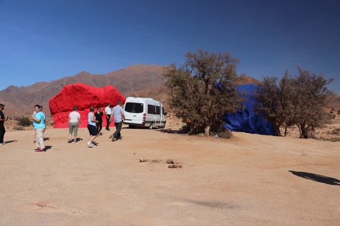 We left Taroudant and travelled through a flat plain for an hour or so where we saw oranges and tomatoes growing for the first time. There is more water available here with irrigation from rivers coming down from the mountains. Also we started to see Argon Trees. We’ll learn more about that tomorrow but Argon oil from the seeds is used as both beauty products and in cooking.