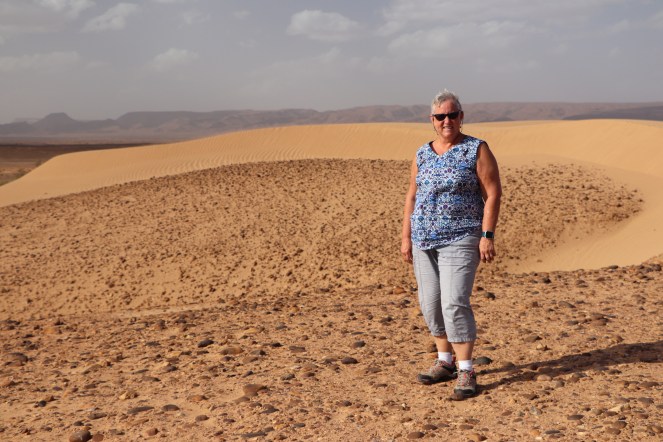 So, “painted rocks”, and and I’m thinking petroglyphs or something from the ancient Arabic people or something like that. Take a look at the pictures and you’ll see I was mightily disappointed. We made our way into the area where there were some really interesting natural rock formations where you could let your imagination run wild and see all sorts of things in the rounded boulders. Then we came upon the most hideous sight. The story goes that in 1984, a visitor, I think from Brussels, wanted to demonstrate a symbol of peace and he painted the two large boulders in pink and green, which blended nicely into the natural landscape. Well, I guess they got looking a little rough and they were painted again in 2010 and then in 2018 a business man, and owner of a paint company had the rocks painted these bright and rather startling colours. It was quite bizarre and we wasted little time documenting our visit with pictures.