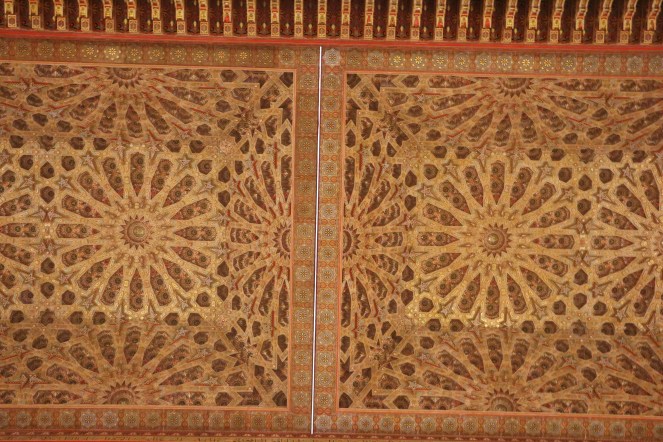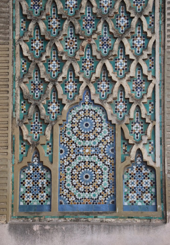 Abdul talked a little about the Hassan II Mosque which we visited yesterday, and noted that it is an example of Moorish design, which incorporates three elements – stucco, mosaic and wood. The cedar for the mosque comes from the Atlas Mountain range which runs for 800 km east-west across the country from the Atlantic to the border with Algiers to the east. The Atlas Mountains are made up of three ranges, the Middle, High and Anti Atlas. The highest peak, Toubkal, is 4167 m and the highest pass is 2260m. We will be travelling through it in a few days.