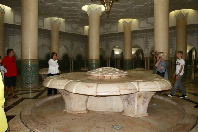 We left Casablanca this morning and could get a sense of how large the city is as we drove out from the city centre it went on for miles. At 6 million people, It is the third largest city in Africa and the 2nd largest in North Africa (Cairo being the largest). There are mostly Arabs (53%) and Berbers (45%) with 2 % “others” being made up of primarily Europeans and non-Arab Africans. There has been a large migration into Morocco in recent years because of the stable government and because it is cheaper to live than in most other North African countries. King Mohameed VI has worked to attract investment in Morocco and there are many foreign owned Riads in Marrakech and Fes as well as foreign infrastructure projects. (Richard Bronson is among those who have invested there) A riad is a guest house with rooms built around a central courtyard. And we went over a the tallest bridge in Africa that a Chinese company had built.