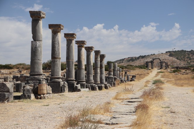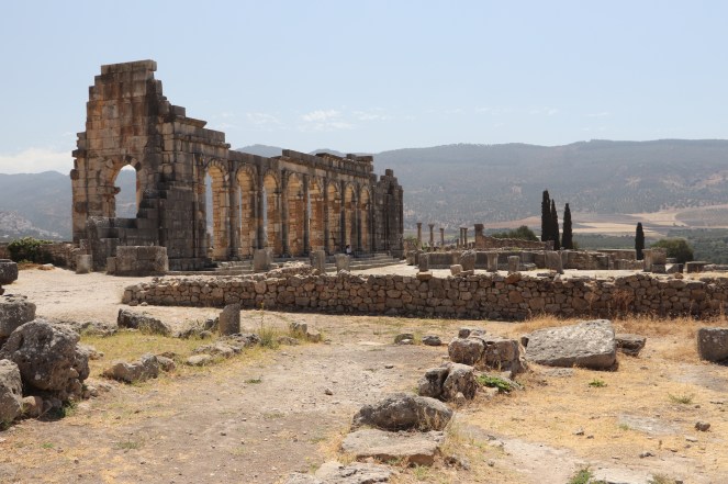 The first order of business for today was a visit to the Roman ruins in Volubilis between Meknes and Fes. This Roman city was home to 15,000- 20,000 residents from approx. 50 BC to 285 AD. The site was pretty much destroyed during the 1755 Lisbon earthquake. Only 1/3 of the site has been uncovered and it’s really well preserved. The mosaics in particular were amazing. No restoration work will be done but rather some items have been placed in museums for preservation and showing. In 1997 it became a UNESCO World Heritage Site. It was hot under the noon day sun, but worth the effort.