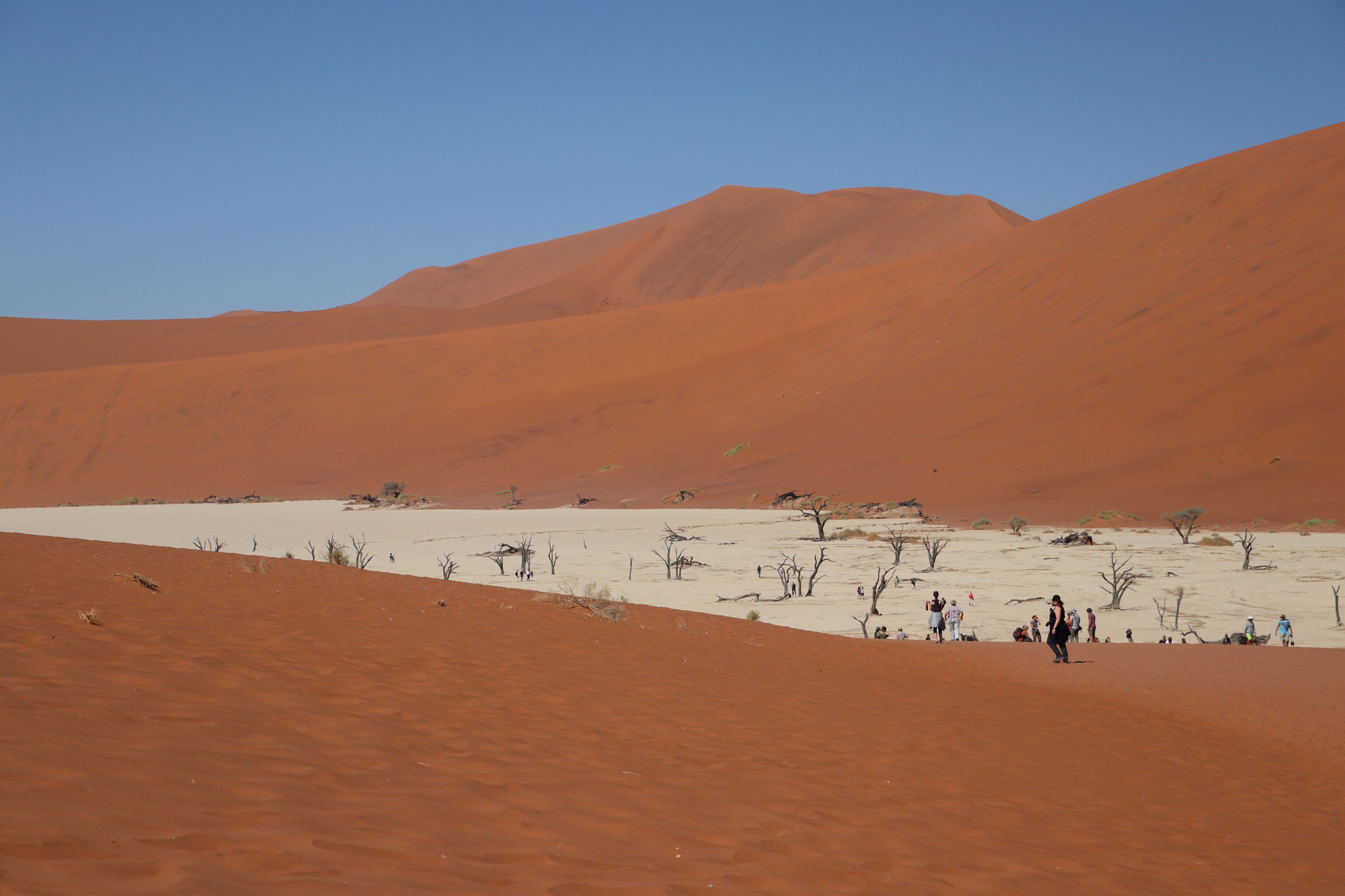 We then headed further into the Park toward the Sossus Vlei area. Once in the vicinity we waited for a lift by 4X4. In ancient times, the Sossus River flowed through this area of the dunes and trees grew in the valley. But when the river dried up, the trees died leaving this unique area of dried and bleached clay and skeletons of trees called Dead Vlei. It has to be one of the most iconic Kodak moments in Namibia.