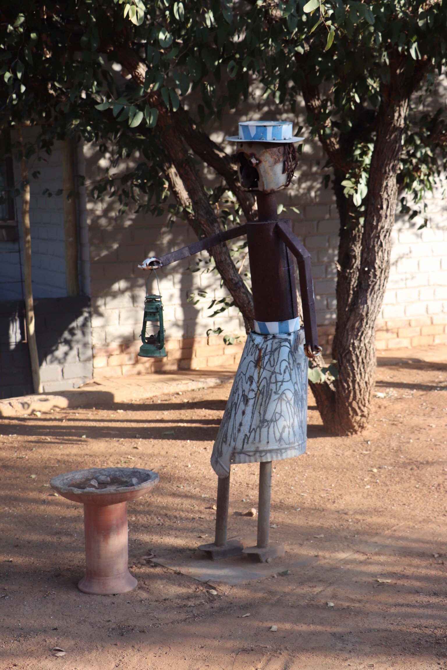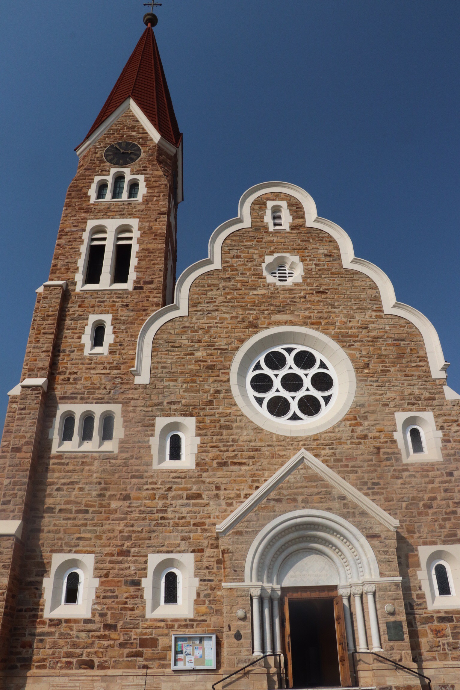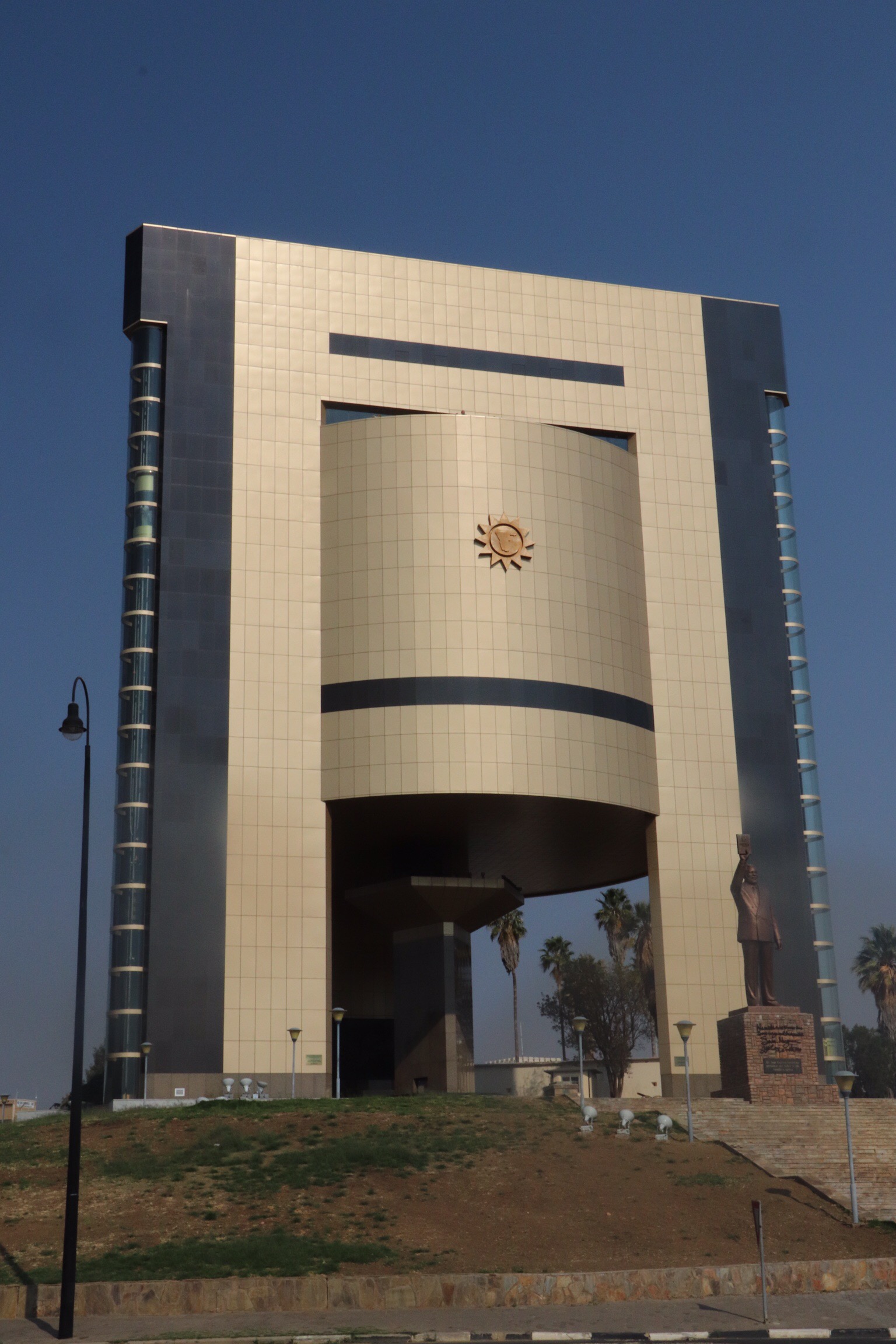 We were given an hour to explore the centre of Windhoek and I took the opportunity to find an optician to see about getting my sunglasses fixed. Sigh. On the game drive in Etosha, when we had a double seat to ourselves, I set my sunglasses on the seat beside me, along with my ball cap when we happened upon some elephants so that I could more easily take pictures. I should have known better. We all moved around the truck while we were stopped to get different photo angles, and one of my fellow travellers sat or kneeled on my glasses. One of the stems was broken off at the hinge, and the hinge was destroyed, but the stem and the lens portion were fine. So Nanci and I headed off, to the core of the downtown area, with warnings to be careful of our purses, in search of an optician. A 10 minute walk found us in a medium size mall that included not only an optician but a money exchange. The optician was able to take a hinge from another pair of glasses in 20 minutes and for only Cdn $10 and they are good as new. And we were able to get some money exchanged. So 2 missions accomplished.