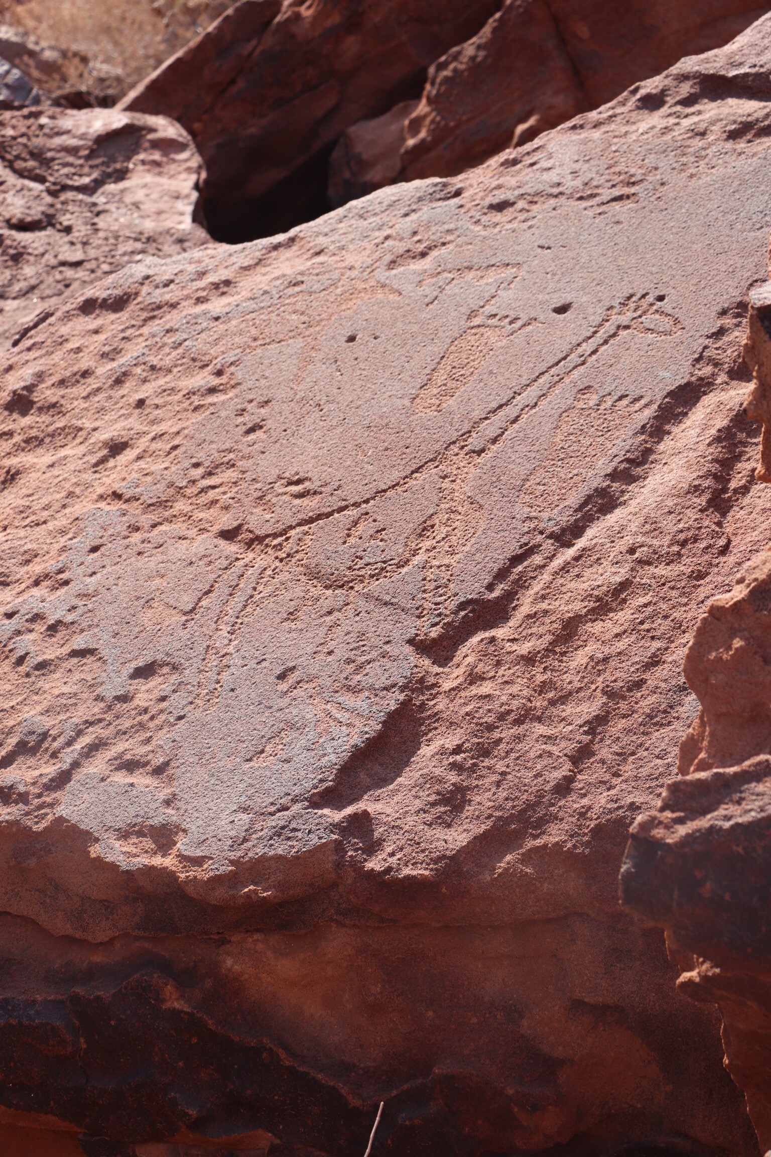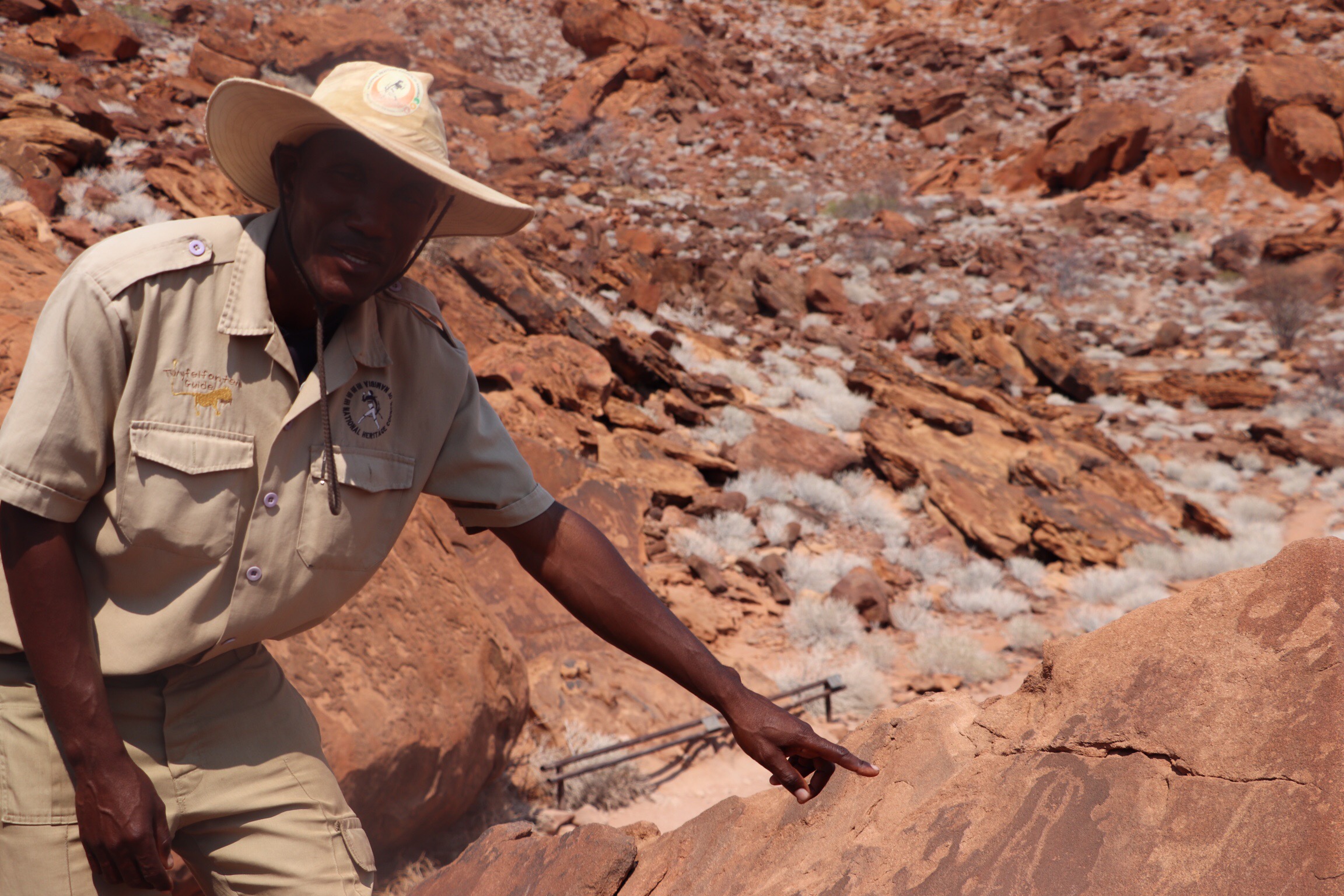 Then in 1921, rock drawings were found in this area that are 2000-6000 years old. They were etched in the iron rich sandstone, and acted like early Google Maps, to depict areas where animals and water could be found in the region. They were pretty amazing, although rudimentary etchings, and one even indicated a giraffe with its neck in 3 different positions to indicate it leaning over to drink. Water holes were indicated by a circle and those that were permanent had a dot in the middle of the circle. We saw just a few of the over 2500 drawings found in the area.