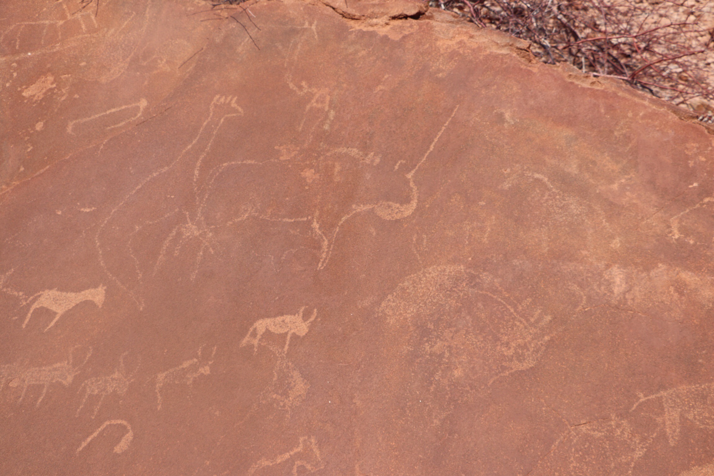 We started at the second of two UNESCO World Heritage Sites we’ve visited in Namibia. The first was Sossusveil, where we climbed Dune 45. This one is called Twyfelfontain which means a place where there is sometimes water and sometimes not. An early settler tried, with his large family, to eek out an existence in this unforgiving area, but he was unsuccessful because of the uncertainty of the water supply and the site was abandoned.