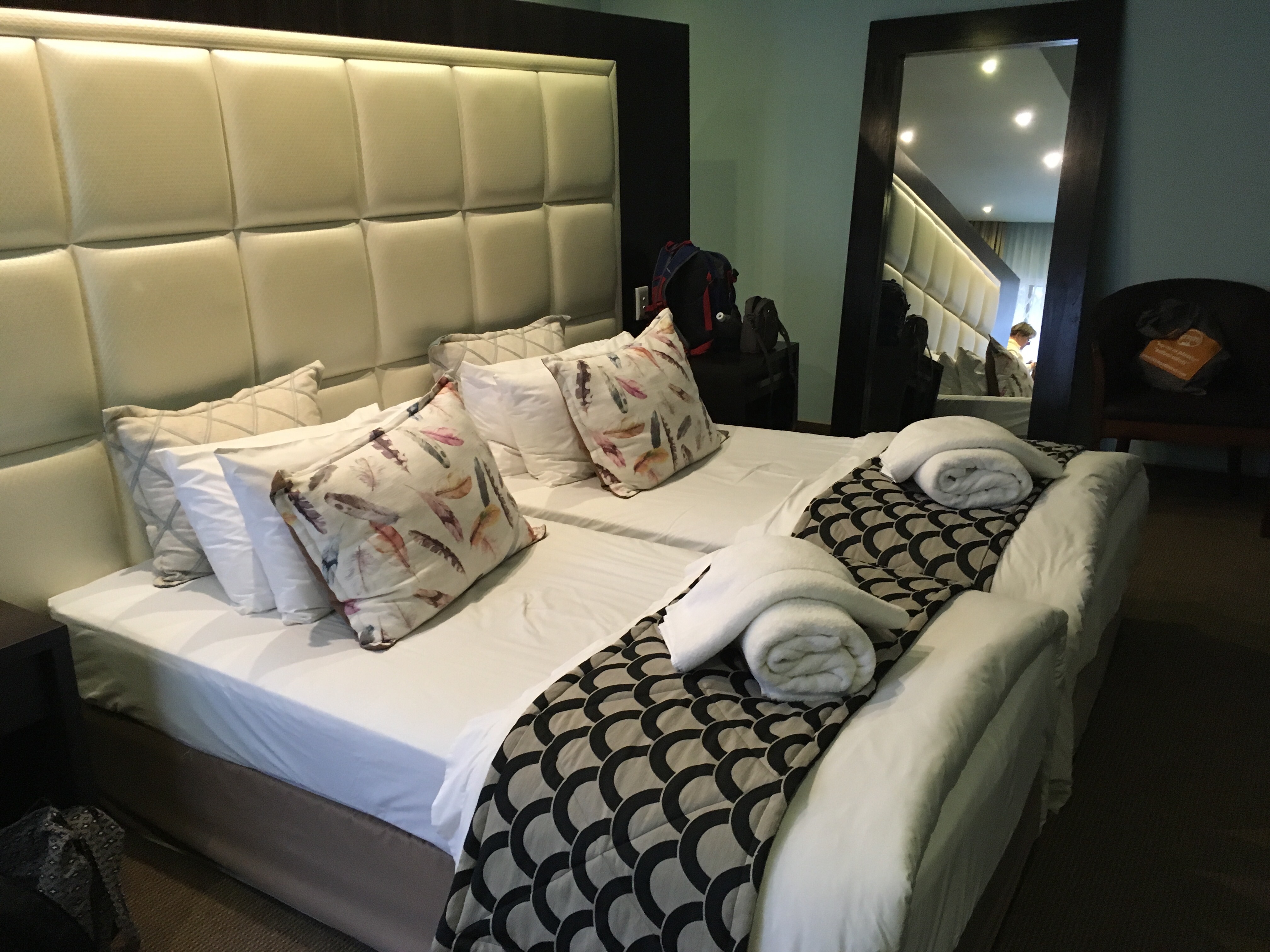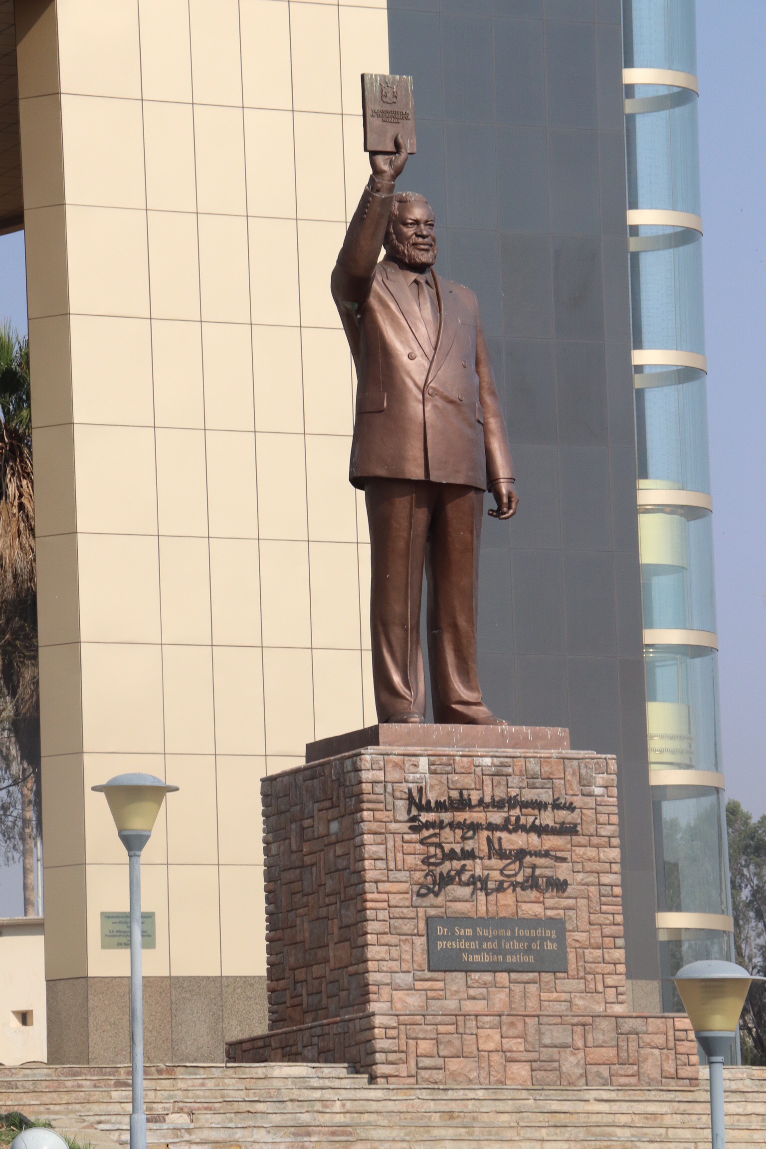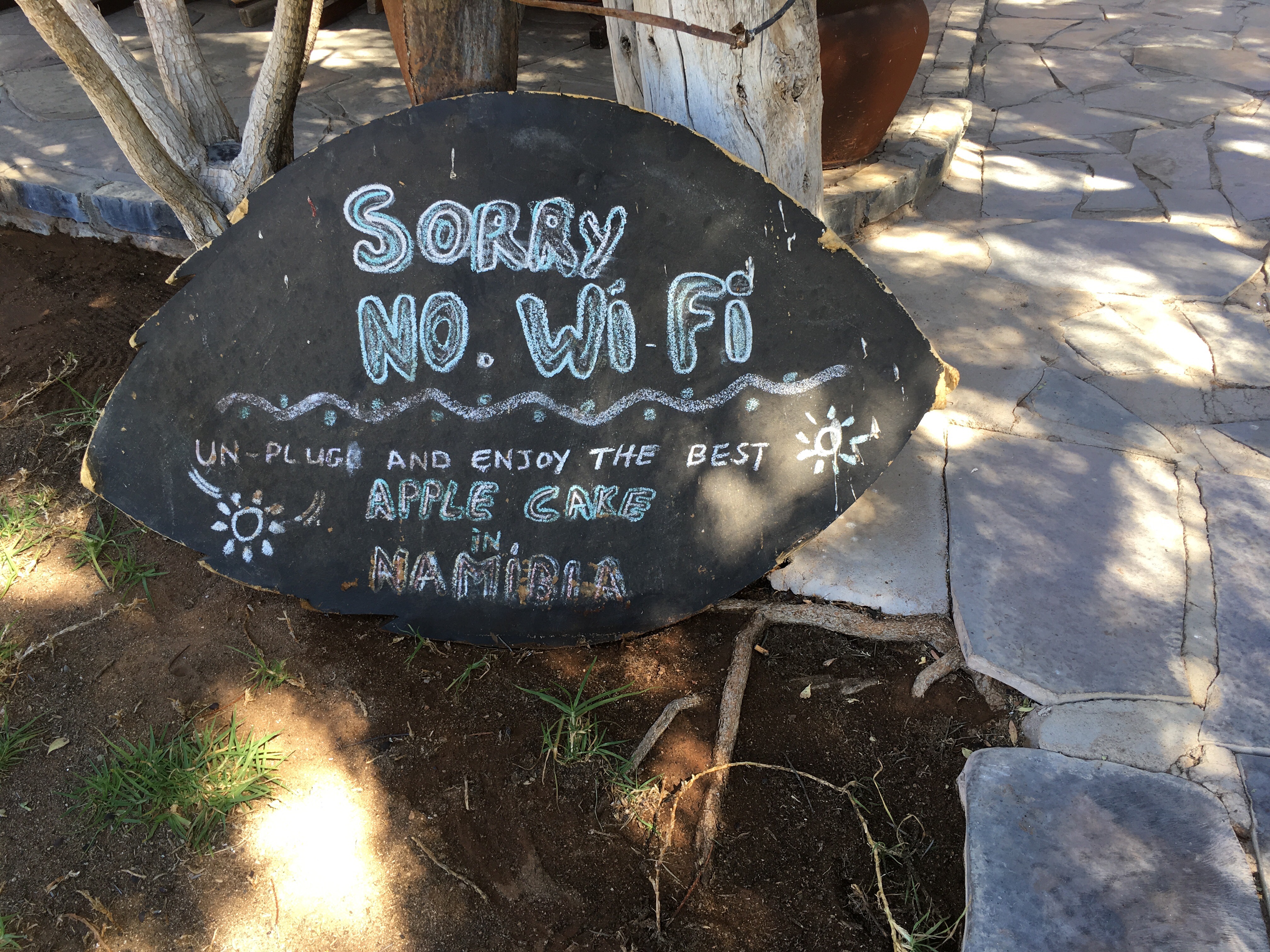 We took a quick look at the main church and took pictures of a monument to the first President of Namibia, Dr. Sam Nujoma. We noted with interest that there were major streets named after Fidel Castro and Robert Mugabe. And then we were off to check in to our hotel. I didn’t take pictures of this hotel because it was in the process of having a new roof installed and so was a mess. Ironically it was called the Roof of Africa. We had some time to relax, swim or use the wickedly fast wifi. You can guess which I chose.