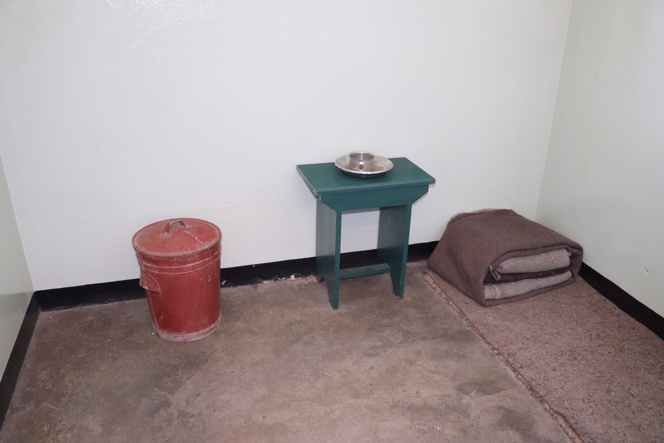 One of my take-aways was the number of lesser known, by me at least, activists, who were imprisoned there between 1962 and 1991, and their hardships. The political prisoners endured even more hardship than the criminal element. Torture and incredibly poor living conditions such as just thin mats on the cement floor for sleeping with only thin blankets against the cold winters, a bucket as a toilet, torture, small food rations, infrequent visits and letters from family were all endured. Below is a picture of cell number 4, Nelson Mandela’s cell.