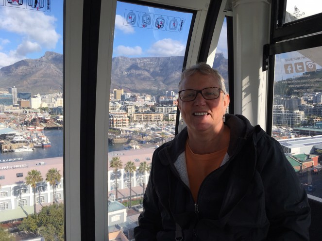 After lunch we headed over to the Cape Wheel while the weather was good and the crowds were thin. It took us up 40 metres and was a great way to see around the whole area, with the beautiful back drop of Table Mountain on one side and the Atlantic on the other, with lots of interesting things to see in between. Part of the proceeds from the wheel go the Laureus Sport for Good Foundation, South Africa. The funds are use to support projects for youth, particularly those involving sport for those who could not otherwise afford to participate.