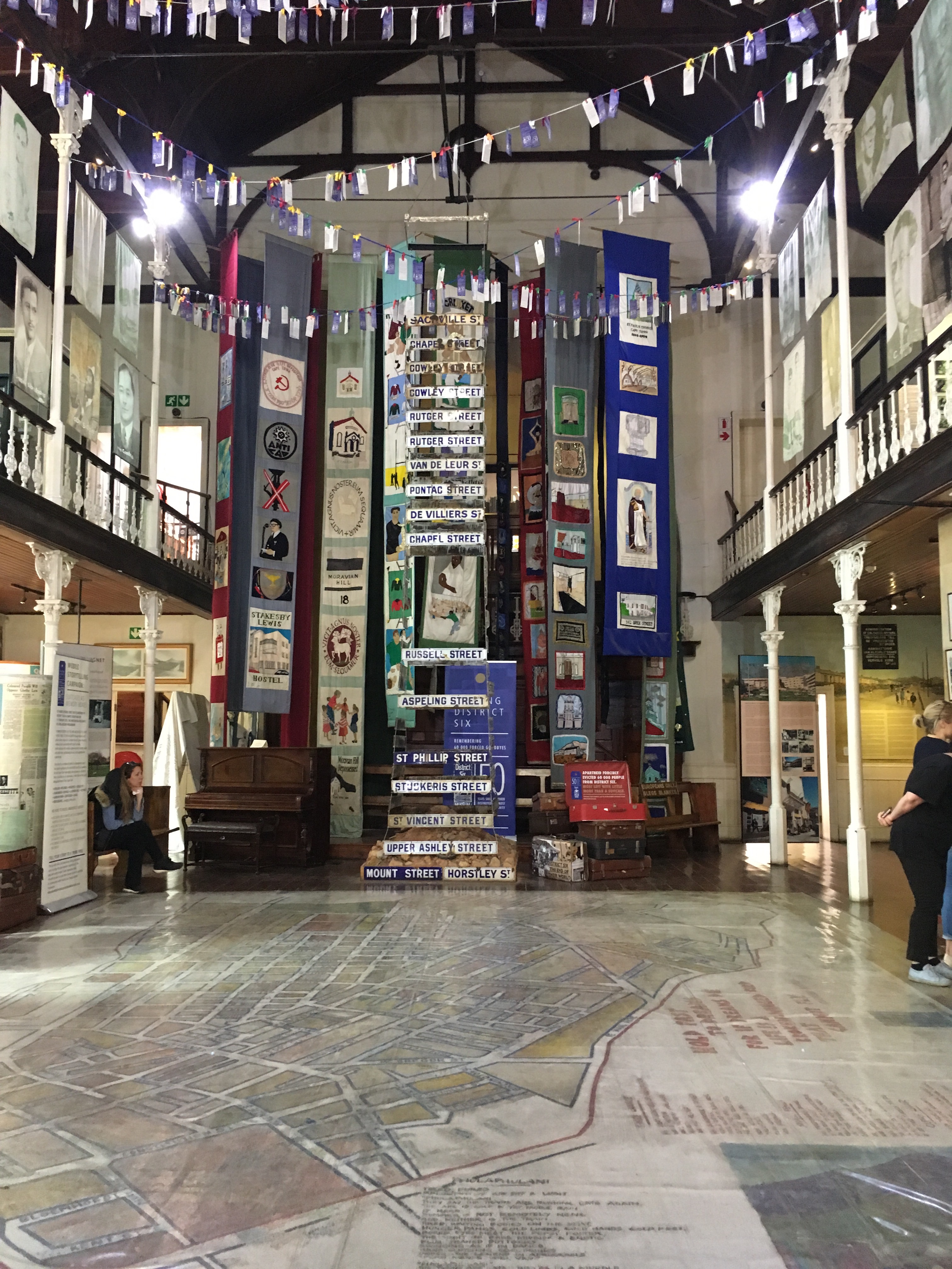 We stopped to browse through the Greenmarket Square and managed to stimulate the local economy a little. Then we headed over to the District Six Museum. District Six was the scene of the removal of over 60,000 inhabitants in the late 1960’s and early 1970’s under the apartheid regime and specifically under the Group Areas Act. The area was an active and lively community as early as in the late 1800s, full of indigenous peoples and immigrants of all sorts of descents; Malay, Blacks, Indians and Afrikaners. Their homes were flattened and they were relocated to a dreary area outside the city. Under the Group Areas Act, people were also moved out of rural areas. After the fall of apartheid in 1994 the government started to rebuild the area and Nelson Mandela oversaw the return of residents as early as 2003. Claimants are still working to get their property rights and housed re-built as well as restitution for lost quality of life, loss of education, etc.