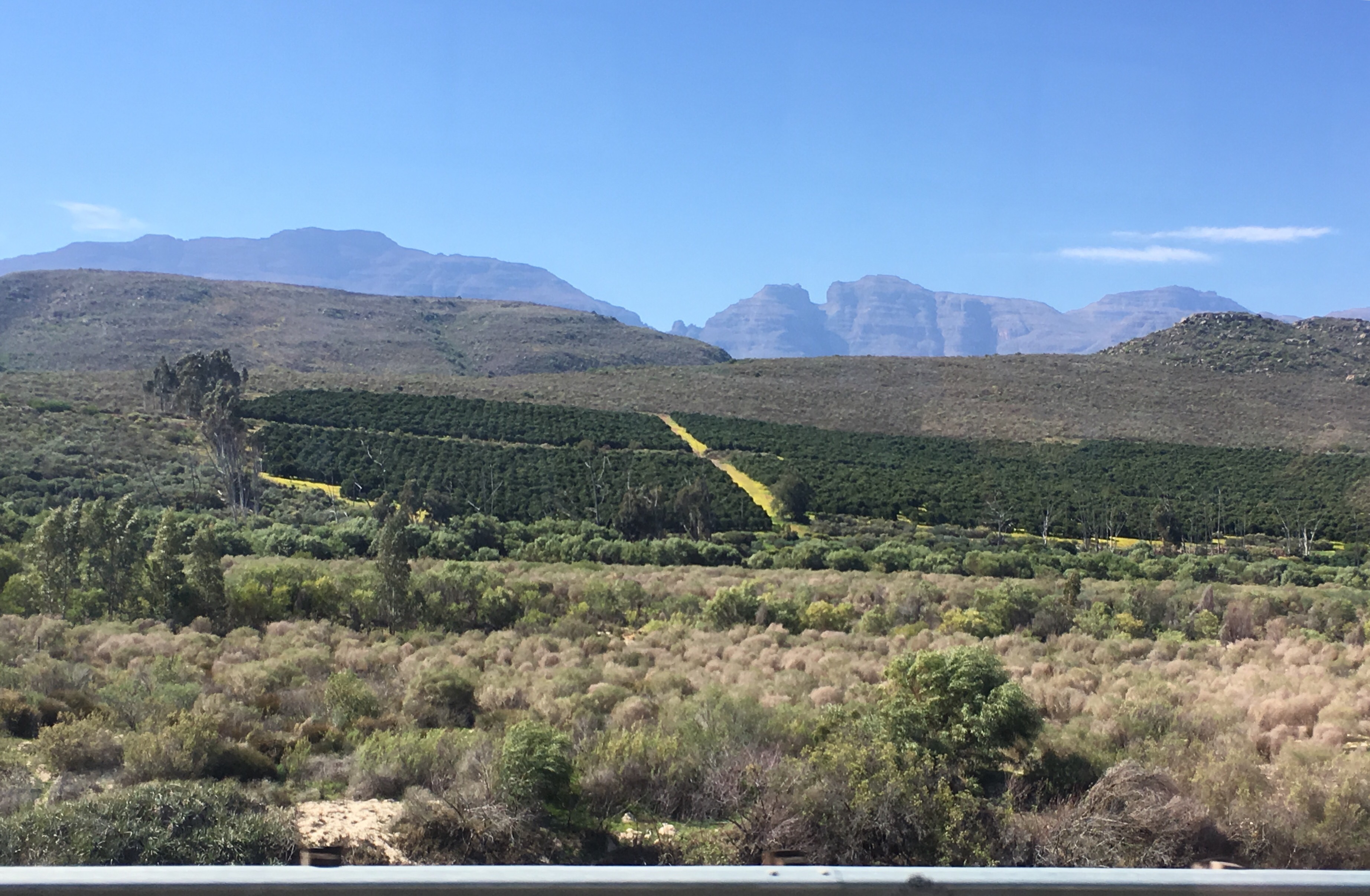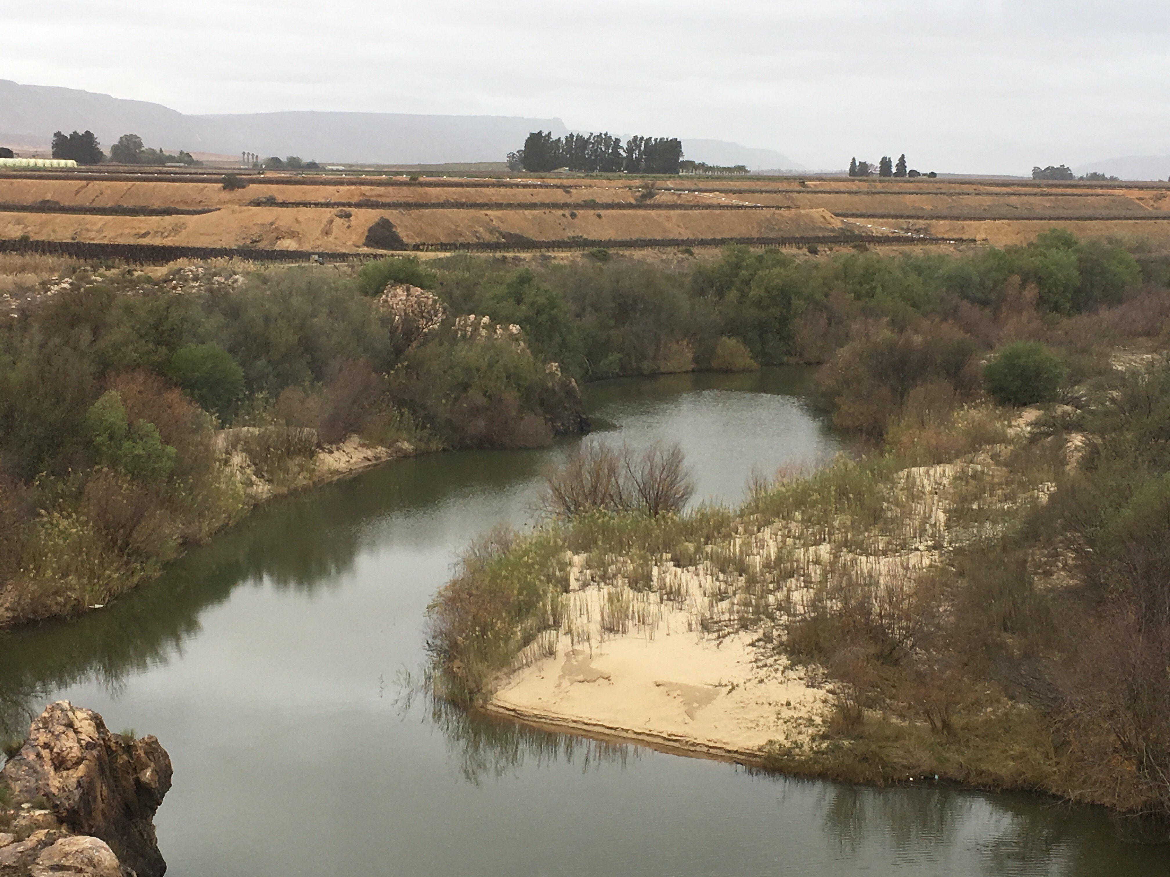 The Oliphant River is the lifeblood of the farmers in the region that we drove through this morning. They use a system of canals to irrigate using river water. We saw mostly huge fields of grape vines but also orange groves and tomato plants. There are also lots of sheep grazing. We followed the river for some time crossing it at least once.