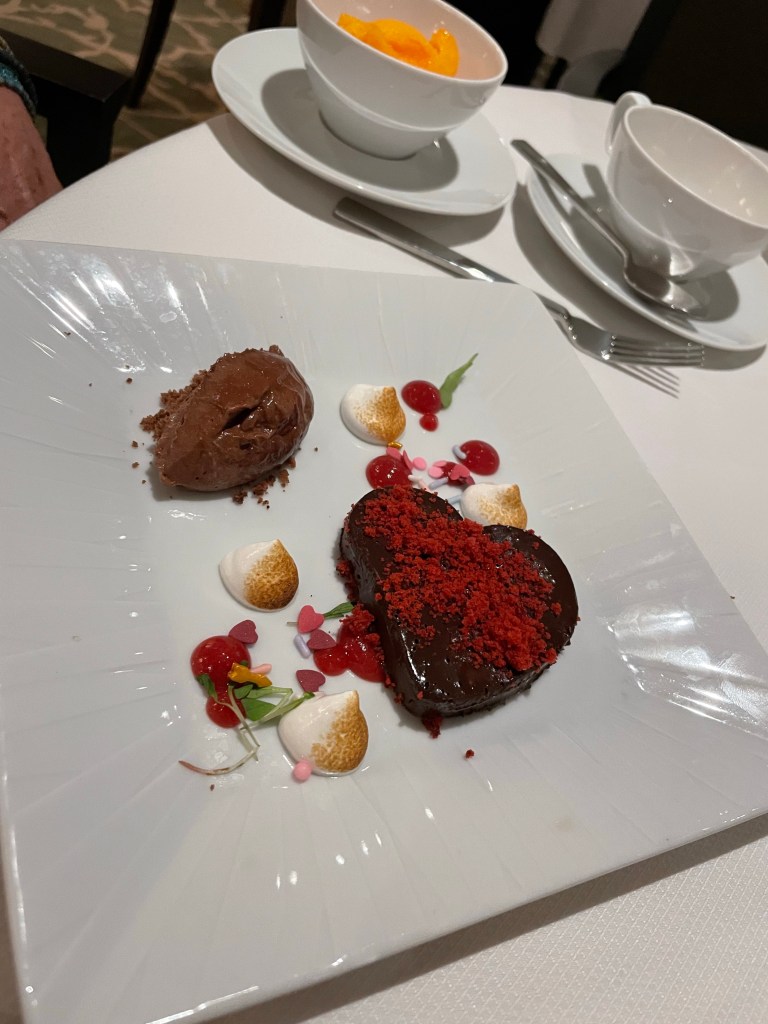 Being Valentines Day, our on-board cruise consultant (they offer special deals if you book your next cruise while you’re on this one, they’re not stupid), Emmillee who is just a wonderful woman, invited some single women to sit at her table tonight which was very thoughtful. Not that I’m pining after a Valentine! It was a lively conversation mostly, of course, about travel. But also about lost love and family.