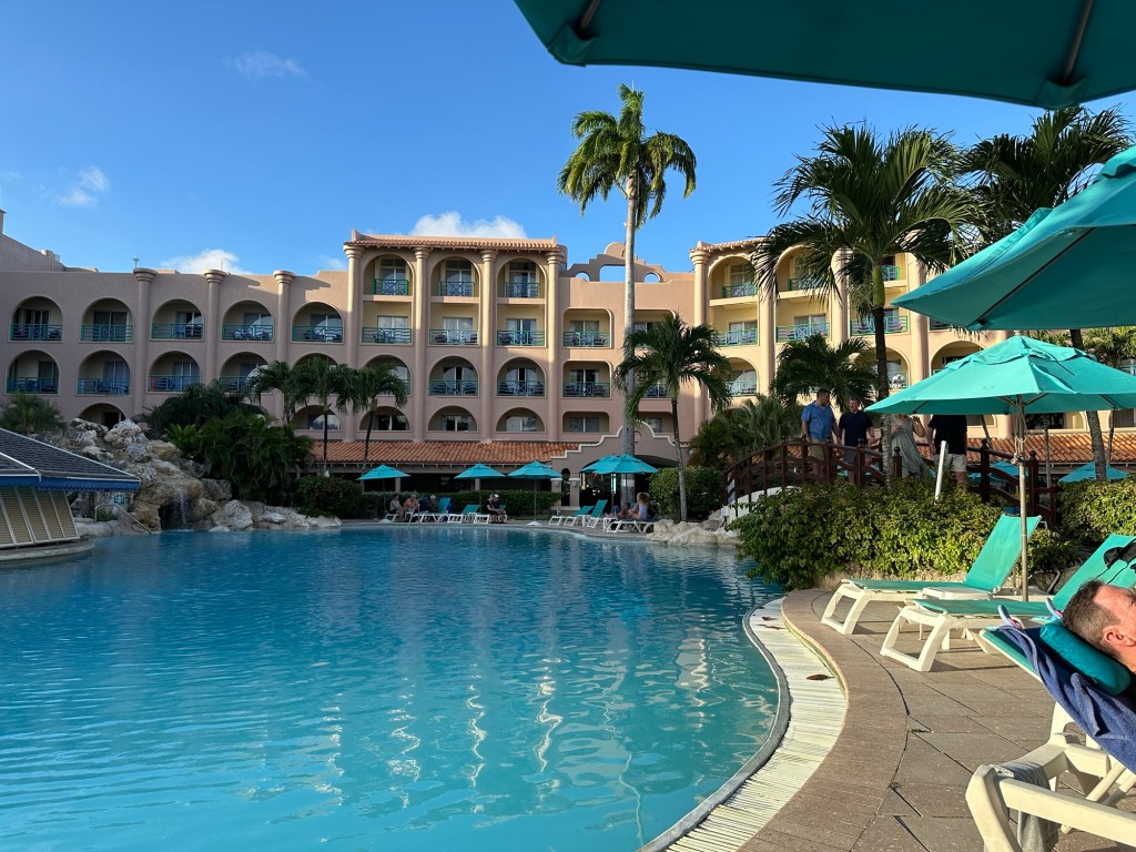 Today we are “At Sea” on our way to the ABC Islands of Aruba, Bonair and Curaçao. The day started off overcast and rainy, unfortunately, weather systems move so quickly through the Caribbean that it cleared up by 9:30 or so and it’s now very warm when in the sun. I’m not.