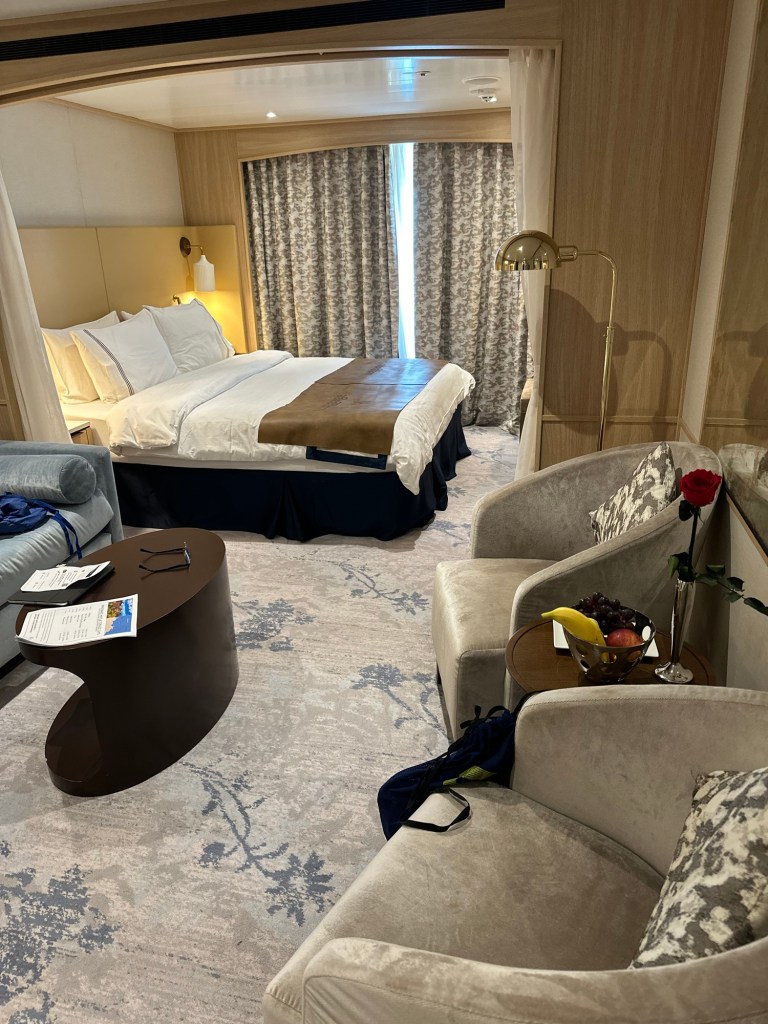There is a main dining room, Amphora, for dinners which is open seating anytime within their hours (6:30 – 9ish). Plus there are two specialty restaurants, Cuadro 44, which is a Spanish restaurant and Candles Steak and Chop house for dinners where you have to make reservations because they are small but there is no extra charge. And an indoor/outdoor buffet and table service restaurant for breakfast and lunch called Veranda, and the Star Grill which is open for most breakfasts, lunch and dinner, which is on deck and offers various grilled proteins, salad bar and desserts. That is my favourite. Casual dress fits with my style, and shorts and T-shirts are welcome at any of the restaurants during the day, and long pants, or dresses are required in the indoor dinner places but no one is in suits or ball gowns for sure. And there are no theme dress evenings, like on some cruise ships which I know some people enjoy.