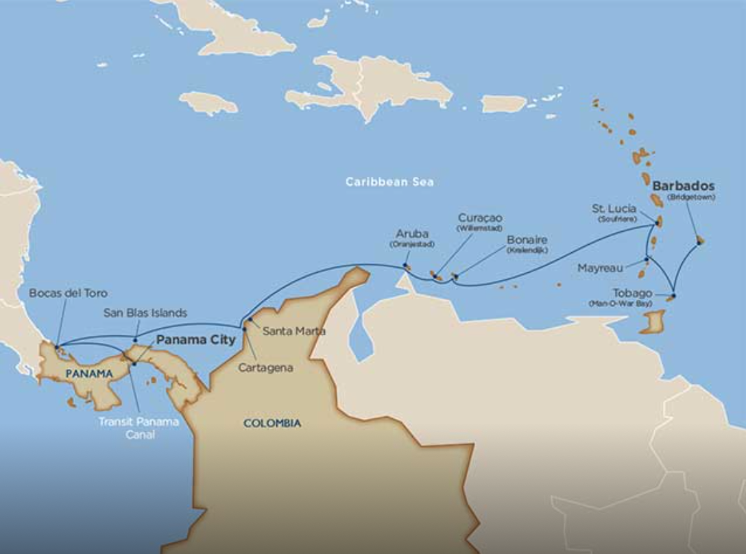 As the title “Windward Islands and New Spanish World” suggests we will be hitting a few of the southern most Windward Islands and then heading across the north of South America and Panama, through the Panama Canal to Panama City. I’ve been to a couple of the islands before, but many, many years ago. I’m excited for the warm air and waters, snorkelling, and exploring new places, especially Cartagena.